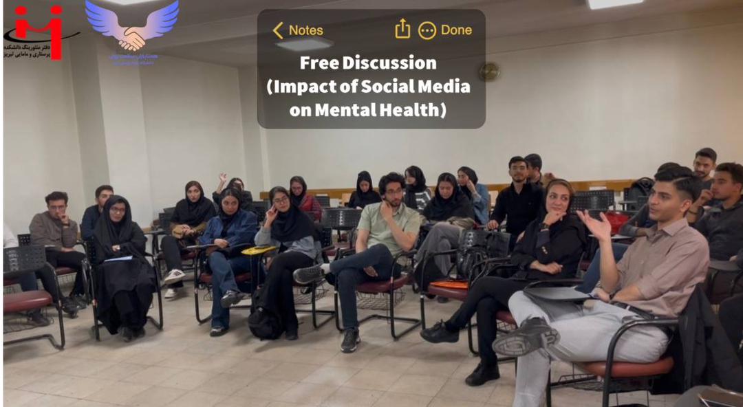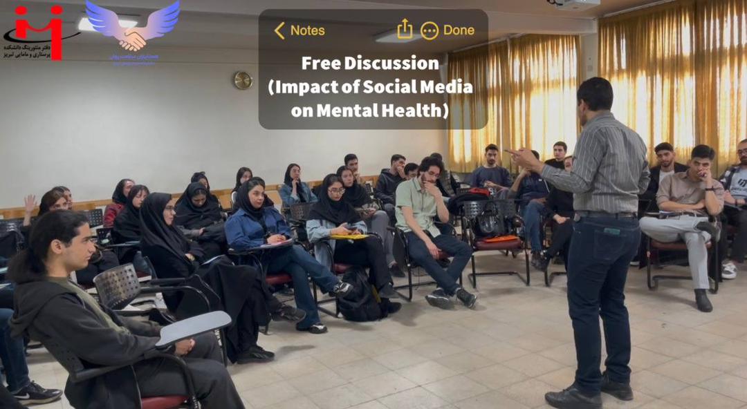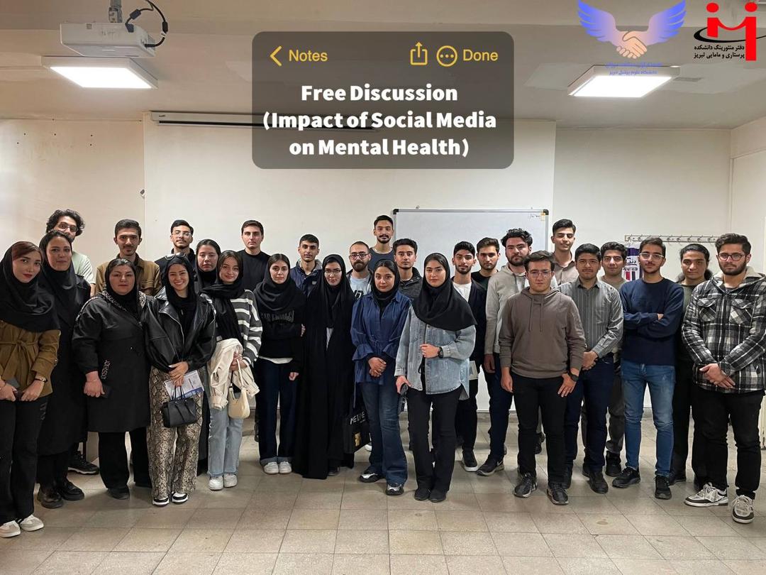 با حضور پرشور دانشجویان ایرانی و بین‌الملل، برنامه‌ی جذاب و آموزنده‌ی Free Discussion با موضوع “The Impact of Social Media on Mental Health” توسط  دفتر منتورینگ دانشکده پرستاری و مامایی تبریز و با همکاری همتیاران سلامت روان دانشگاه علوم پزشکی تبریز  در ۱۲ آبان در کلاس یک دانشکده پرستاری و مامایی تبریز برگزار شد.