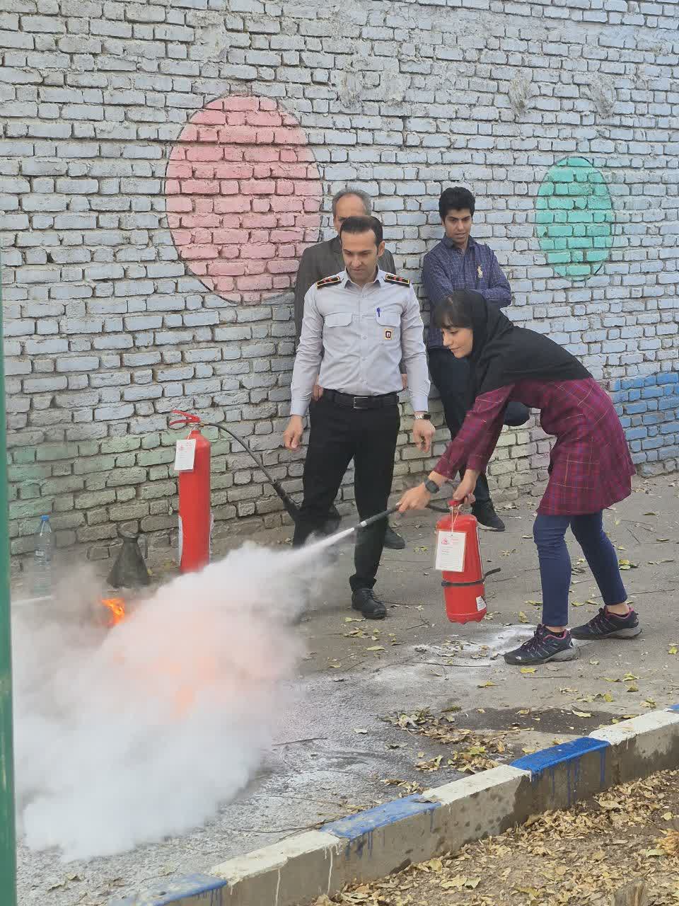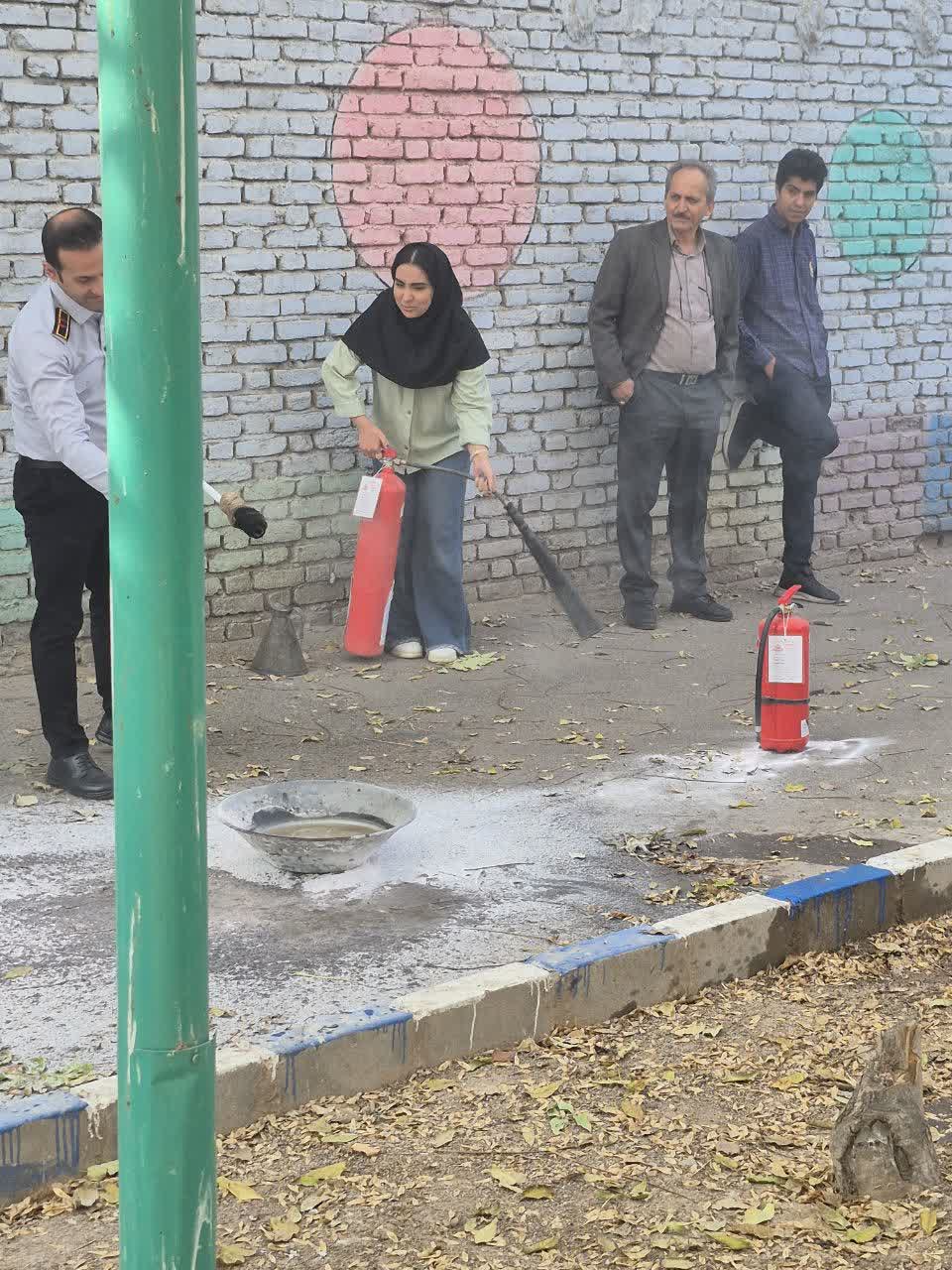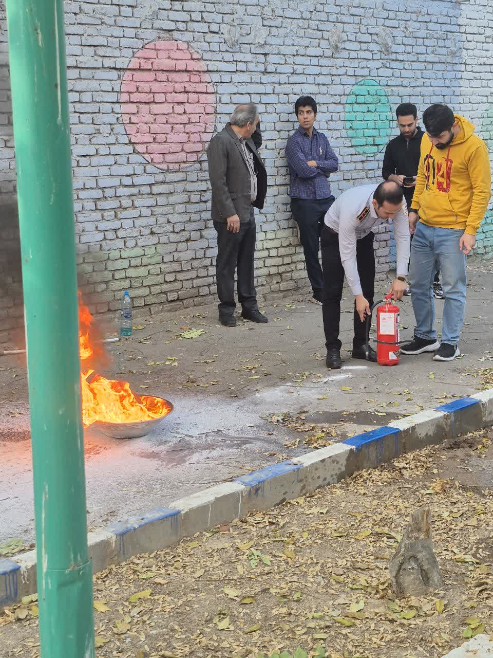 تمرین عملی اطفا حریق دانشجویان ترم 6 پرستاری، زیر نظر سرکار خانم دکتر ال ناز اصغری (دانشیار و مدیر گروه محترم گروه اتاق عمل) روز شنبه مورخ 3 آبان 1404