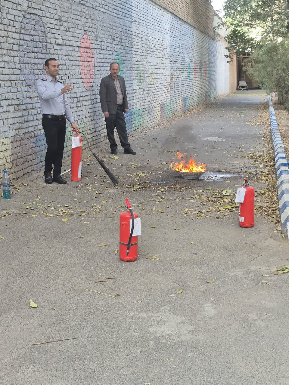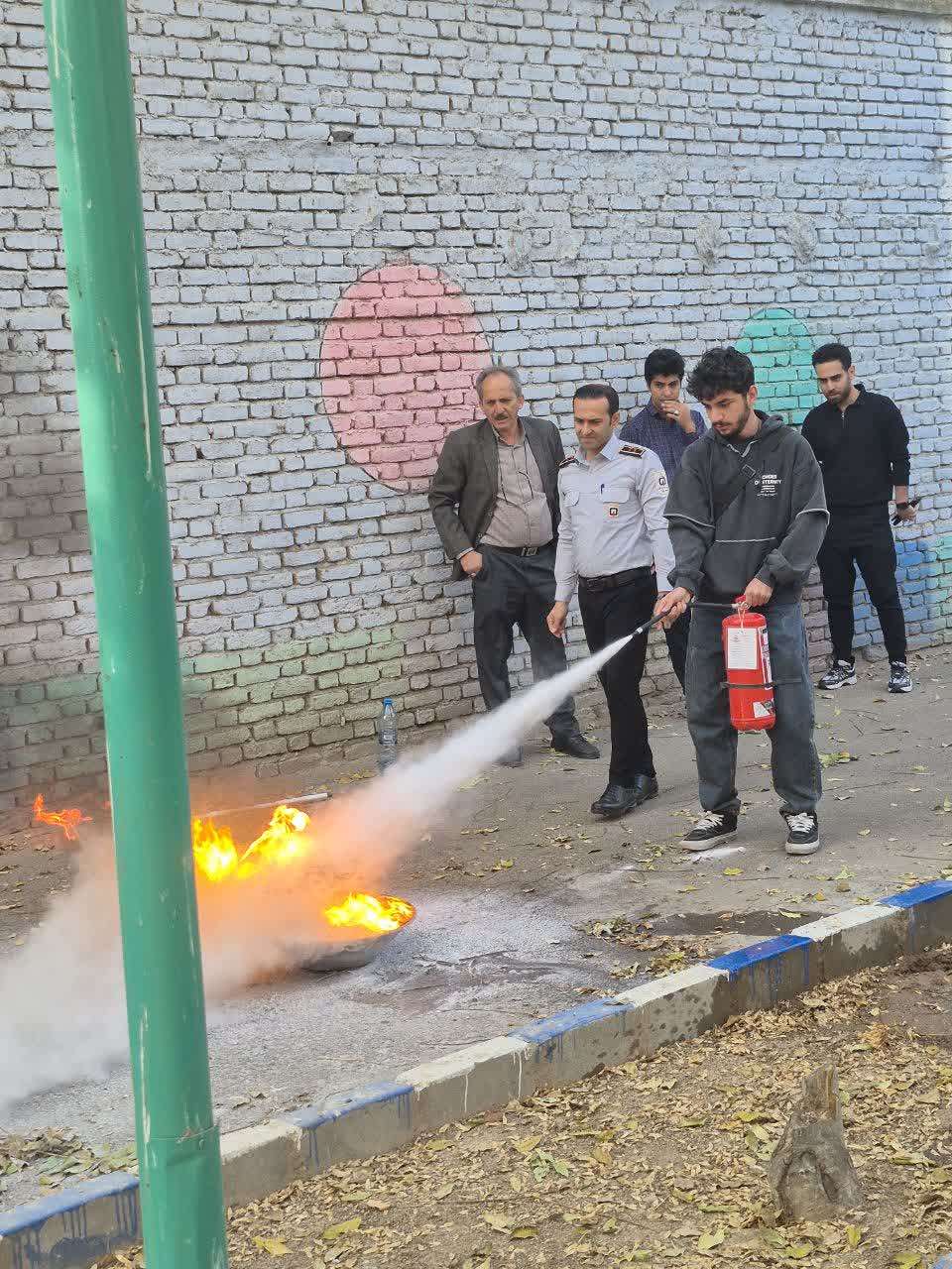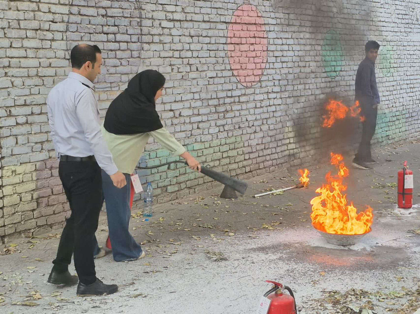 تمرین عملی اطفا حریق دانشجویان ترم 6 پرستاری، زیر نظر سرکار خانم دکتر ال ناز اصغری (دانشیار و مدیر گروه محترم گروه اتاق عمل) روز شنبه مورخ 3 آبان 1404