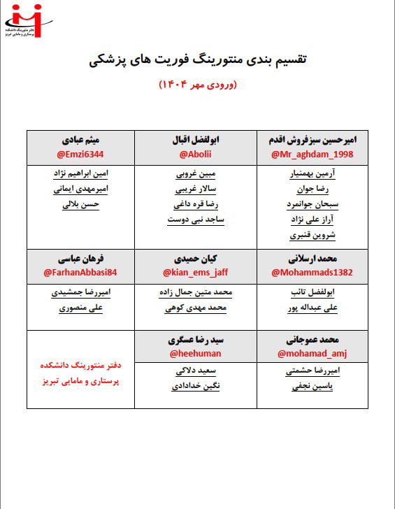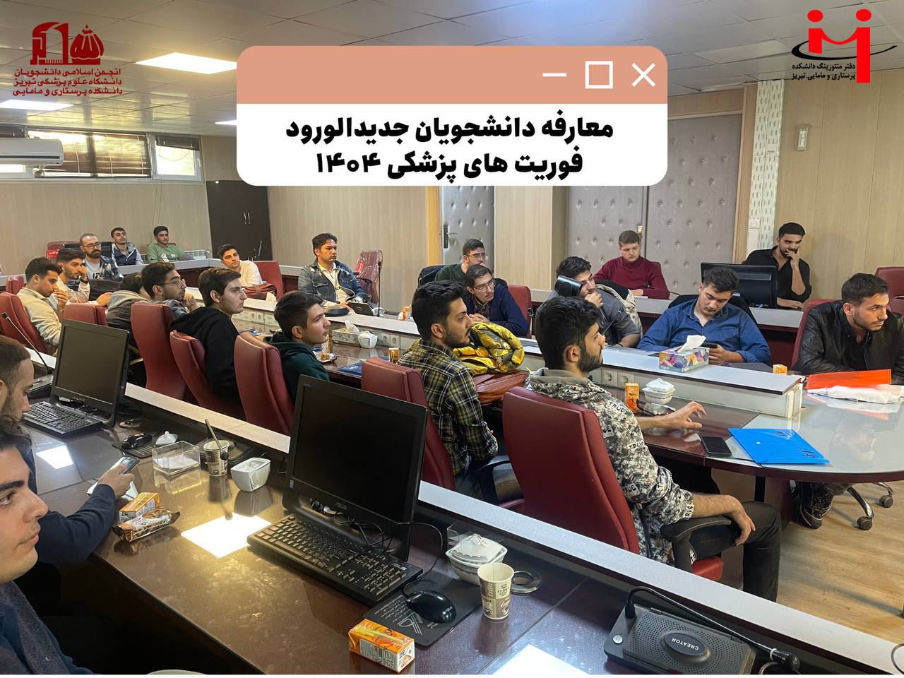 جلسه‌ی معارفه دانشجویان جدیدالورود رشته‌ی فوریت‌های پزشکی در روز سه‌شنبه ۱۳ آبان‌ماه ۱۴۰۴ توسط دفتر منتورینگ دانشکده پرستاری و مامایی تبریز و انجمن اسلامی دانشجویان دانشکده در سالن کنفرانس جدید دانشکده برگزار شد.