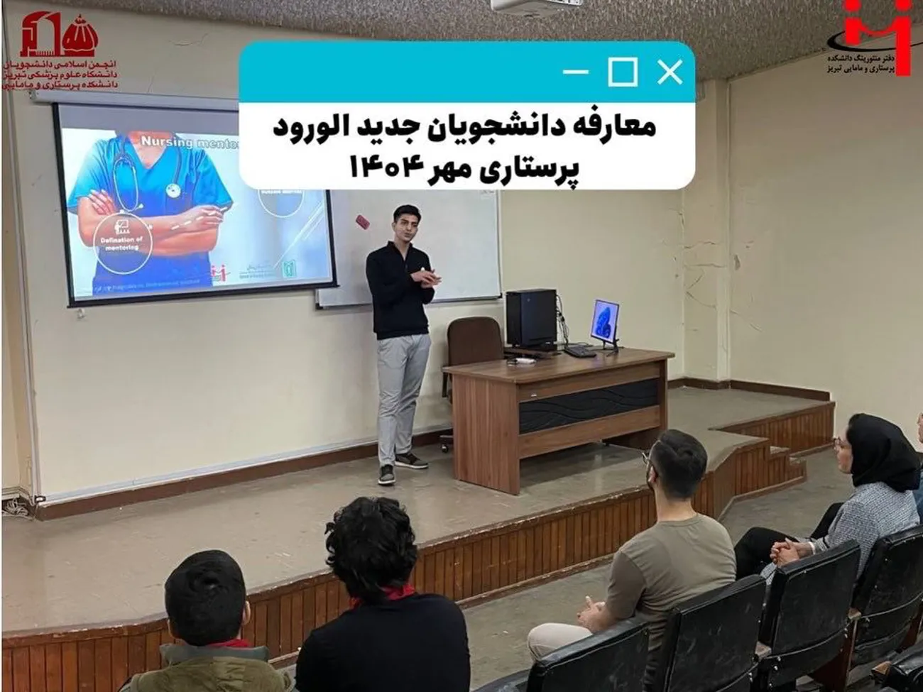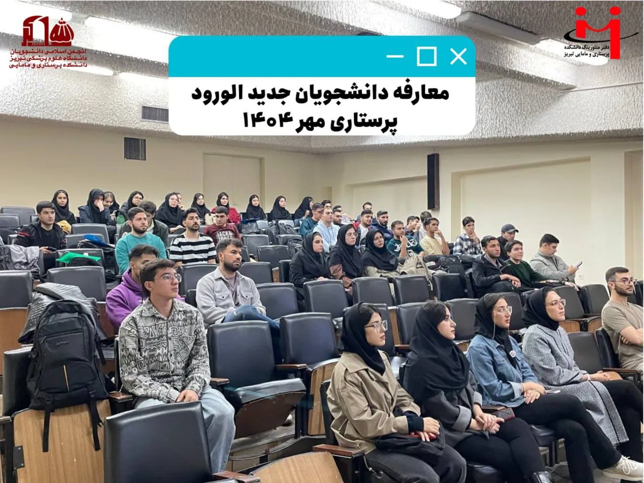 جلسهی معارفه دانشجویان جدیدالورود رشتهی پرستاری در روز دوشنبه 19 آبانماه ۱۴۰۴ توسط دفتر منتورینگ دانشکده پرستاری و مامایی تبریز و انجمن اسلامی دانشجویان دانشکده در تالار تشریح دانشکده برگزار شد.