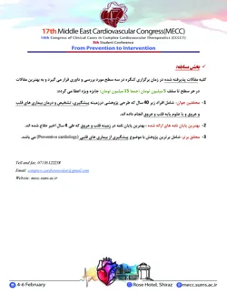 هفدهمین کنگره بین المللی قلب خاورمیانه و دهمین همایش مداخلات پیچیده قلبی همراه با پنجمین کنفرانس دانشجویی 15 لغایت 17 بهمن ماه 1404