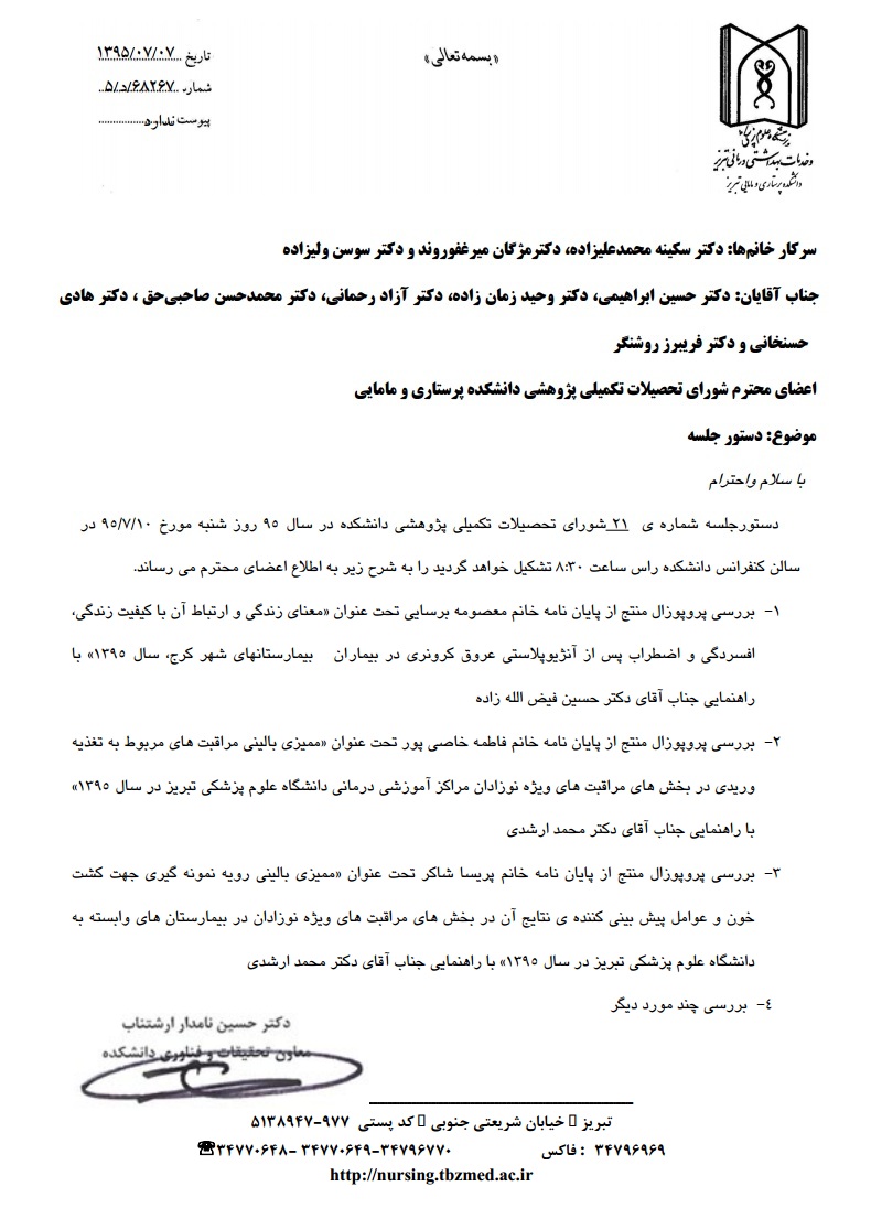 دستور جلسه بیست و یکمین شورای تحصیلات تکمیلی پژوهشی دانشکده در سال 95؛ روز شنبه مورخه 10 مهر