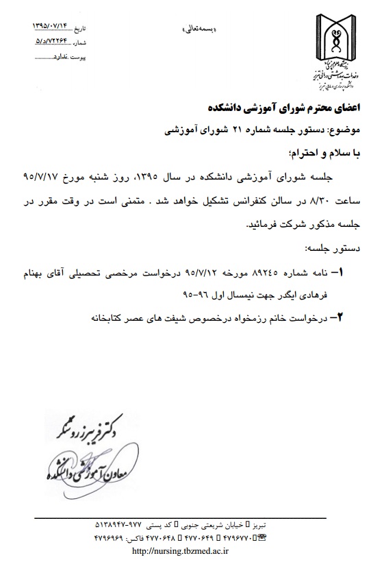 بیست و یکمین جلسه شورای آموزشی دانشکده در سال 95