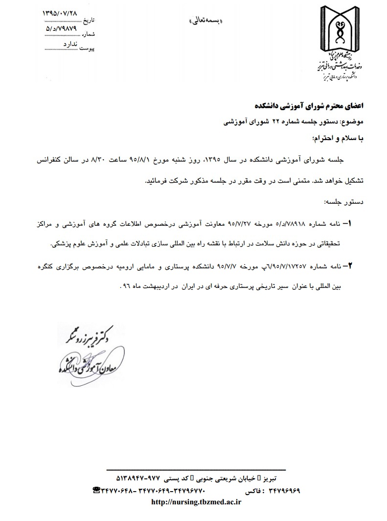 بیست و دومین جلسه شورای آموزشی دانشکده در سال 95