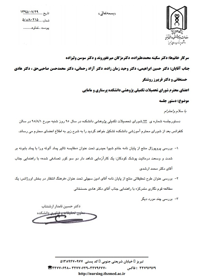 دستور جلسه بیست و دومین شورای تحصیلات تکمیلی پژوهشی دانشکده در سال 95؛ روز شنبه مورخه 1 آبان