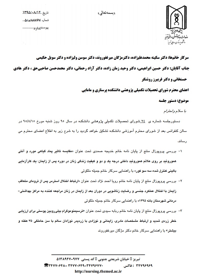 دستور جلسه بیست و چهارمین شورای تحصیلات تکمیلی پژوهشی دانشکده در سال 95؛ روز شنبه مورخه 15 آبان