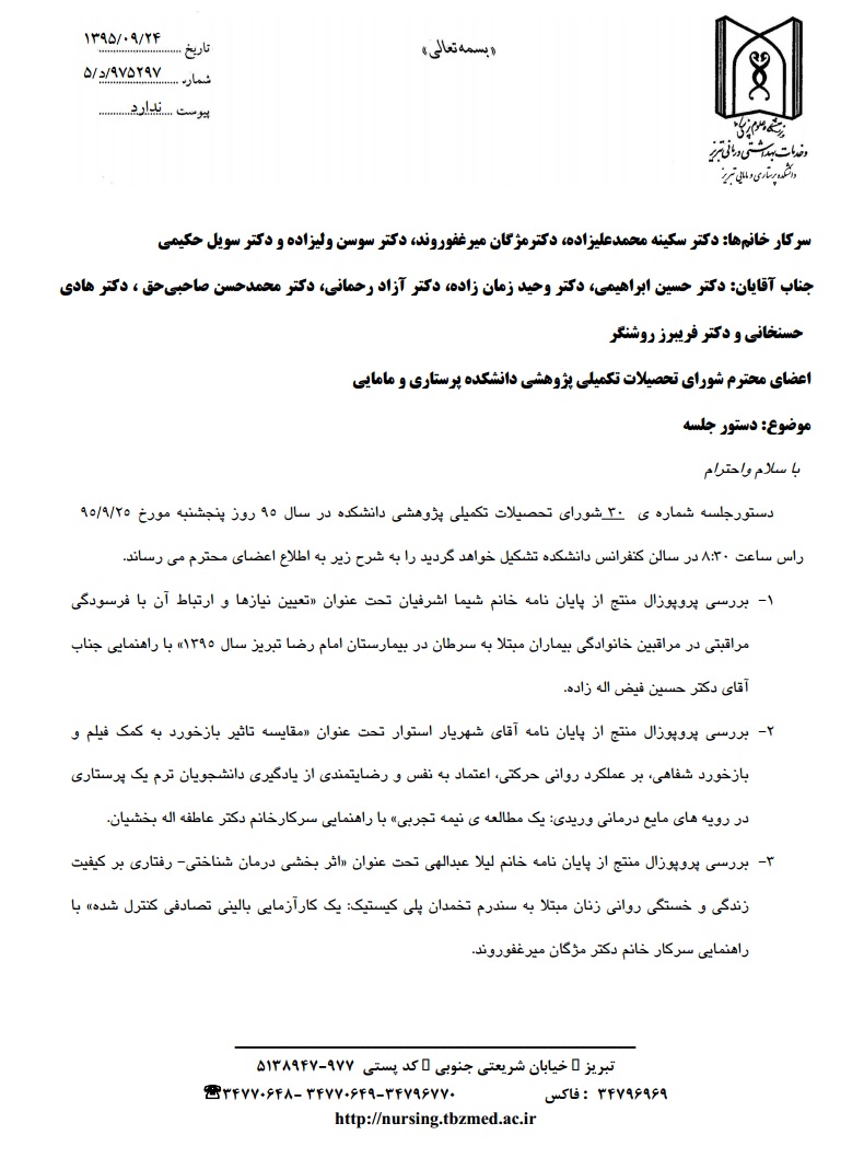 دستور جلسه سی ام شورای تحصیلات تکمیلی پژوهشی دانشکده در سال 95؛ روز پنجشنبه مورخه 25 آذر