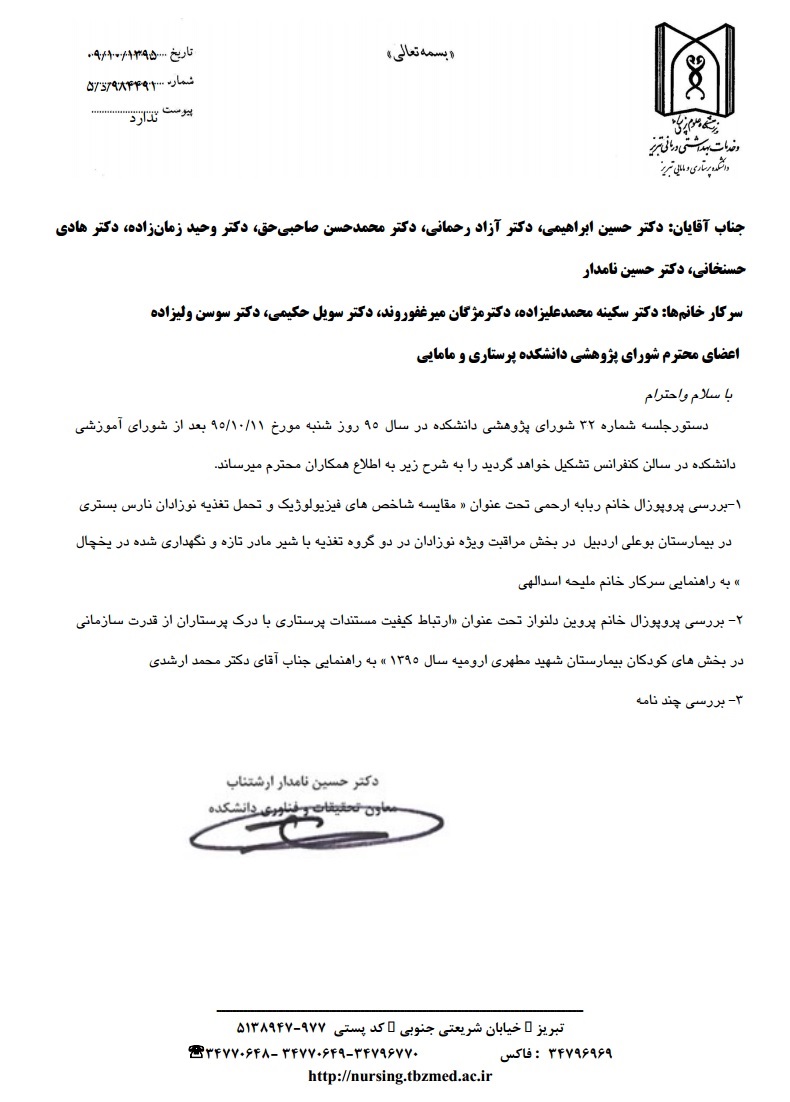 دستور جلسه سی و دومین شورای تحصیلات تکمیلی پژوهشی دانشکده در سال 95؛ روز شنبه مورخه 11 دی
