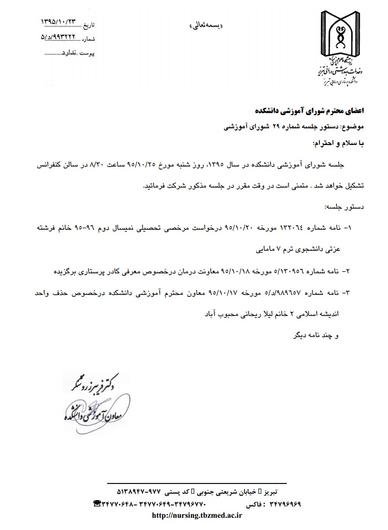 بیست و نهمین جلسه شورای آموزشی دانشکده در سال 95