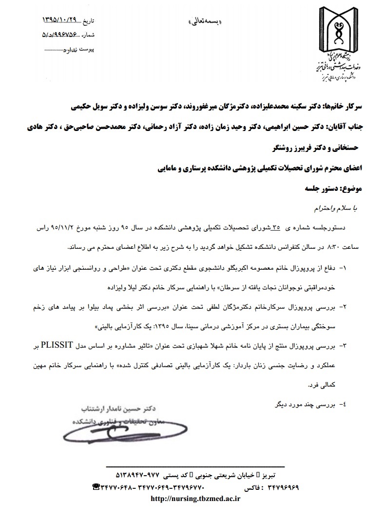 سی و پنجمین جلسه شورای تحصیلات تکمیلی پژوهشی دانشکده در سال 95