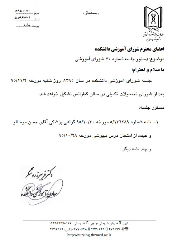 سی اُمین جلسه شورای آموزشی دانشکده در سال 95