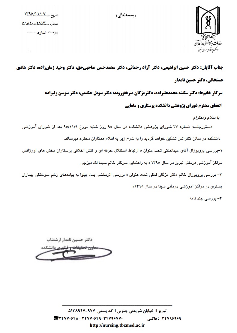 دستور جلسه سی و هفتم شورای تحصیلات تکمیلی پژوهشی دانشکده در سال 95؛ روز شنبه مورخه 9 بهمن
