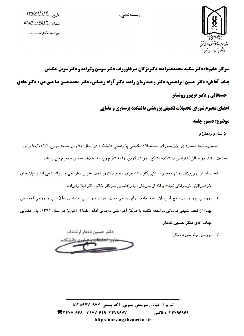دستور جلسه سی و هشتم شورای تحصیلات تکمیلی پژوهشی دانشکده در سال 95؛ روز شنبه مورخه 16 بهمن