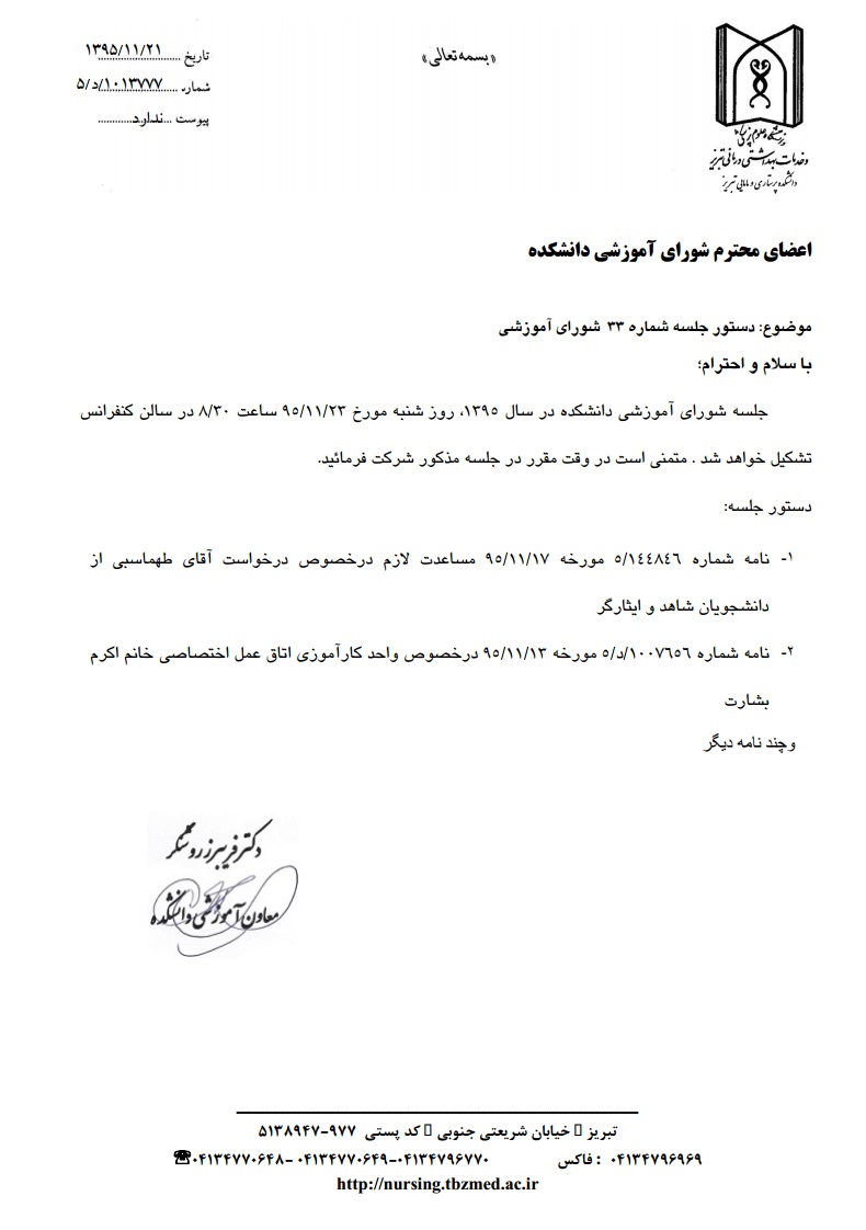 دستور جلسه سی و سومین شورای آموزشی در سال 95؛ روز شنبه مورخه 23 بهمن