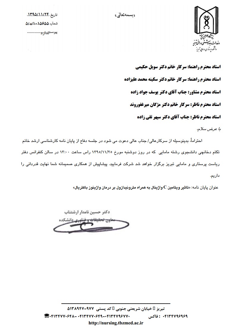 جلسه دفاع از پایاننامه خانم تکتم دخانچی، دانشجوی کارشناسی ارشد مامایی