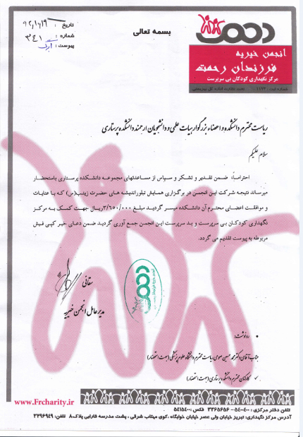 تقدیر و تشکر و سپاس انجمن خیریه فرزندان رحمت از :