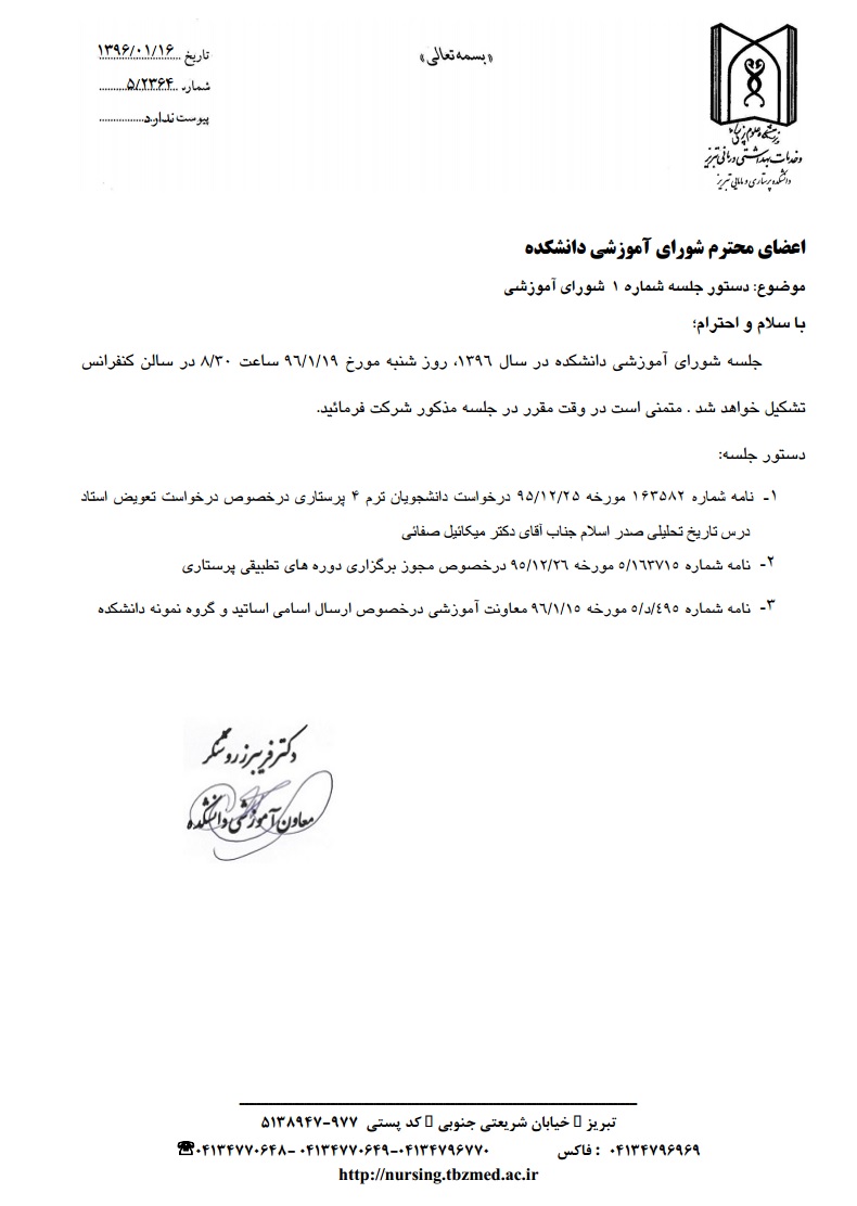 اولین جلسه شورای آموزشی دانشکده در سال 96