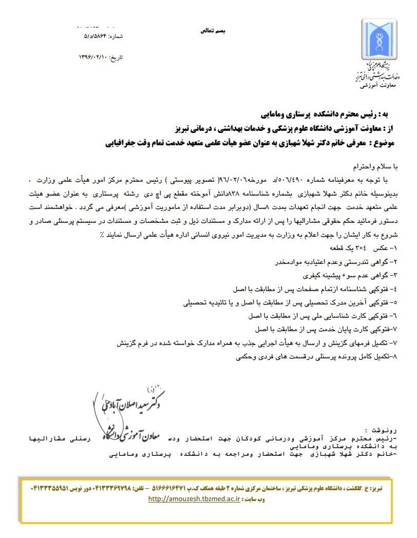 بر اساس اعلام معاونت آموزشی دانشگاه، سرکار خانم دکتر شهلا شهبازی بعنوان عضو هیأت علمی متعهد خدمت معرفی گردیدند. ضمن تبریک این موفقیت به ایشان و خانواده محترمشان، برایشان در تمام مراحل زندگی آرزوی موفقیت و شادکامی داریم.
