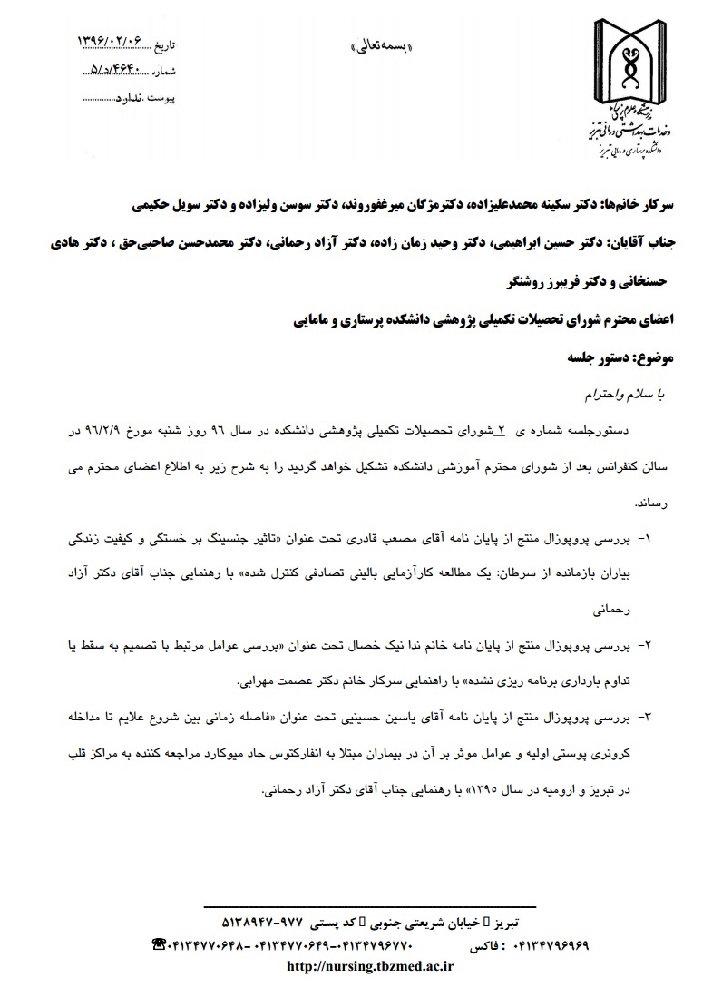 دستور جلسه دومین شورای تحصیلات تکمیلی پژوهشی دانشکده در سال 96؛ شنبه مورخه 9 اردیبهشت