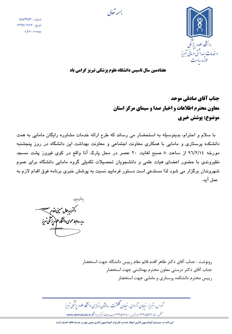 به استحضار می رساند طرح ارائه خدمات مشاوره رایگان مامایی به همت دانشکده پرستاری و مامایی با همکاری معاونت اجتماعی و بهداشتی این دانشگاه در روز پنجشنبه مورخه 14 اردیبهشت از ساعت 8 الی ...