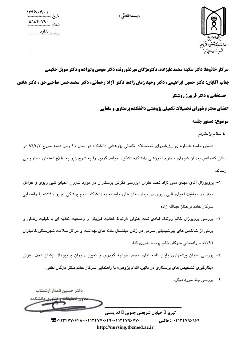 دهمین جلسه شورای تحصیلات تکمیلی پژوهشی دانشکده در سال 96