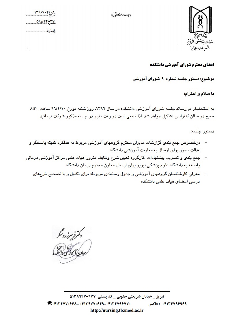 نهمین جلسه شورای آموزشی دانشکده در سال 96