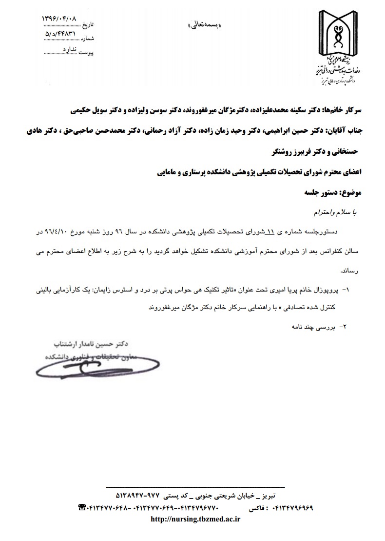 یازدهمین جلسه شورای تحصیلات تکمیلی پژوهشی دانشکده در سال 96