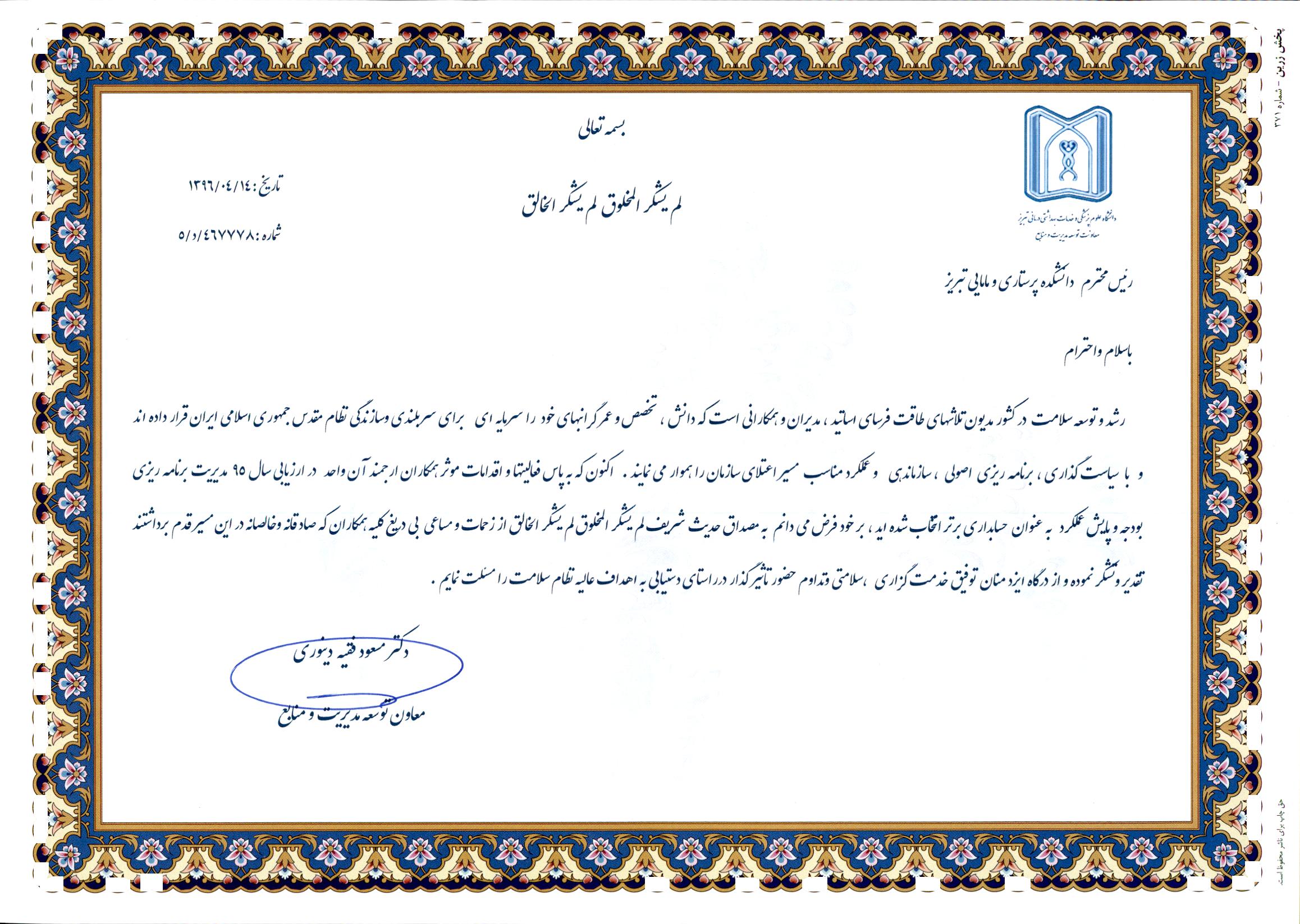 معاون توسعه مدیریت و منابع دانشگاه علوم پزشکی تبریز، با ارسال نامه ای، انتخاب واحد حسابداری این دانشکده بعنوان واحد برتر را تبریک گفته و از درگاه ایزد منان توفیق روزافزون ...