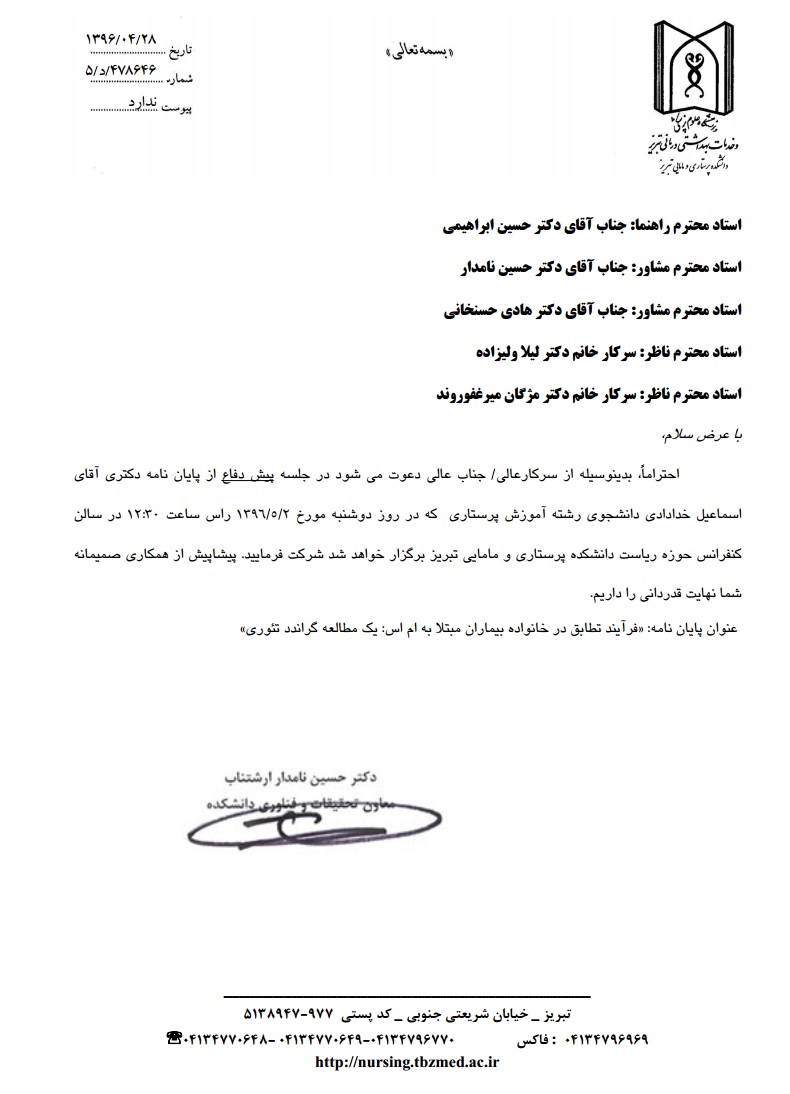 جلسه پیش دفاع از رساله دکترای آقای اسماعیل خدادادی، دانشجوی دکترای پرستاری