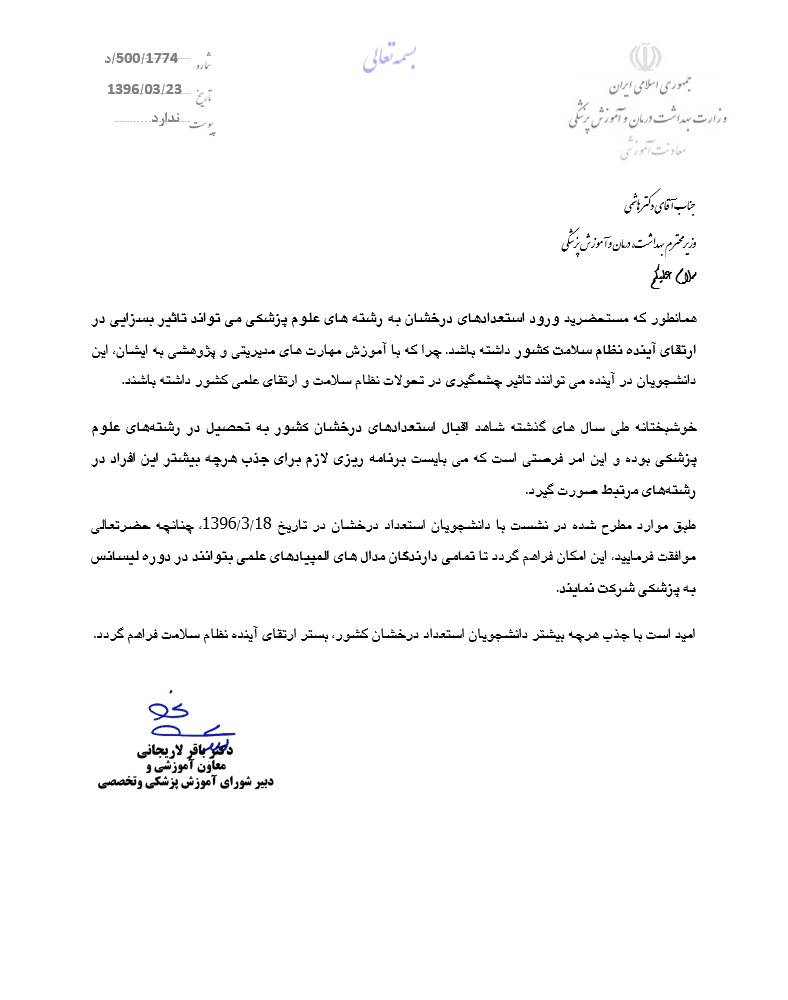قابل توجه دارندگان مدالهای المپیادهای علمی در دوره لیسانس