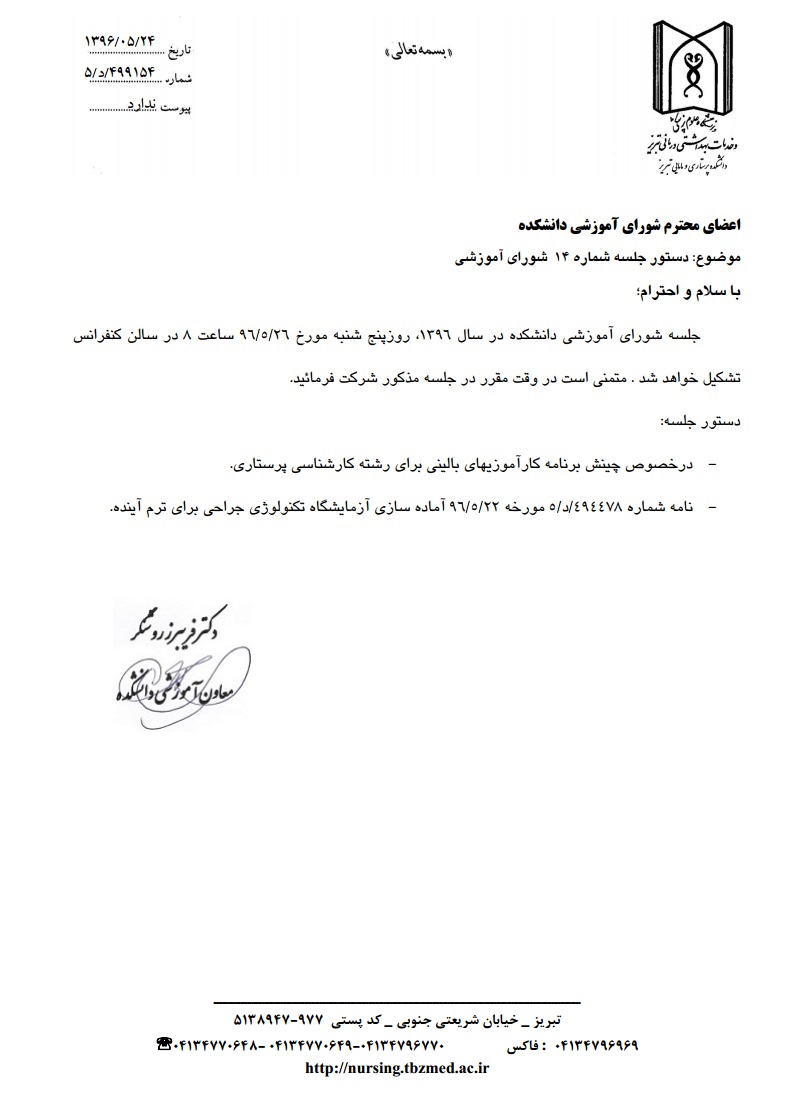 چهاردهمین جلسه شورای آموزشی دانشکده در سال 96