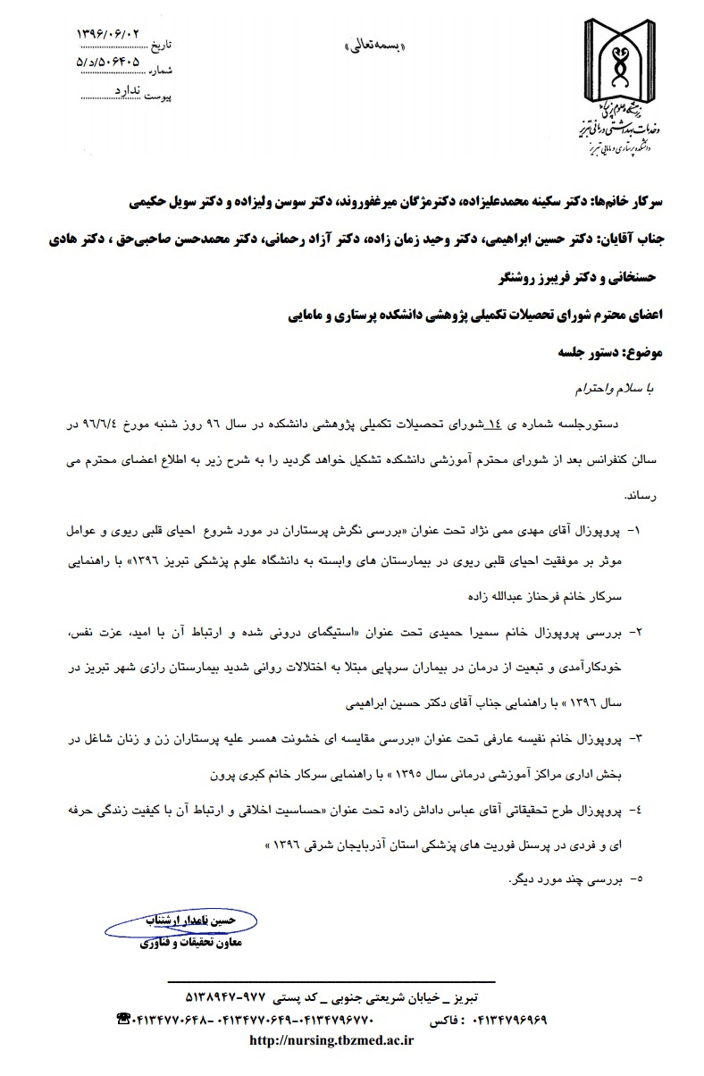 پانزدهمین جلسه شورای تحصیلات تکمیلی پژوهشی دانشکده در سال 96