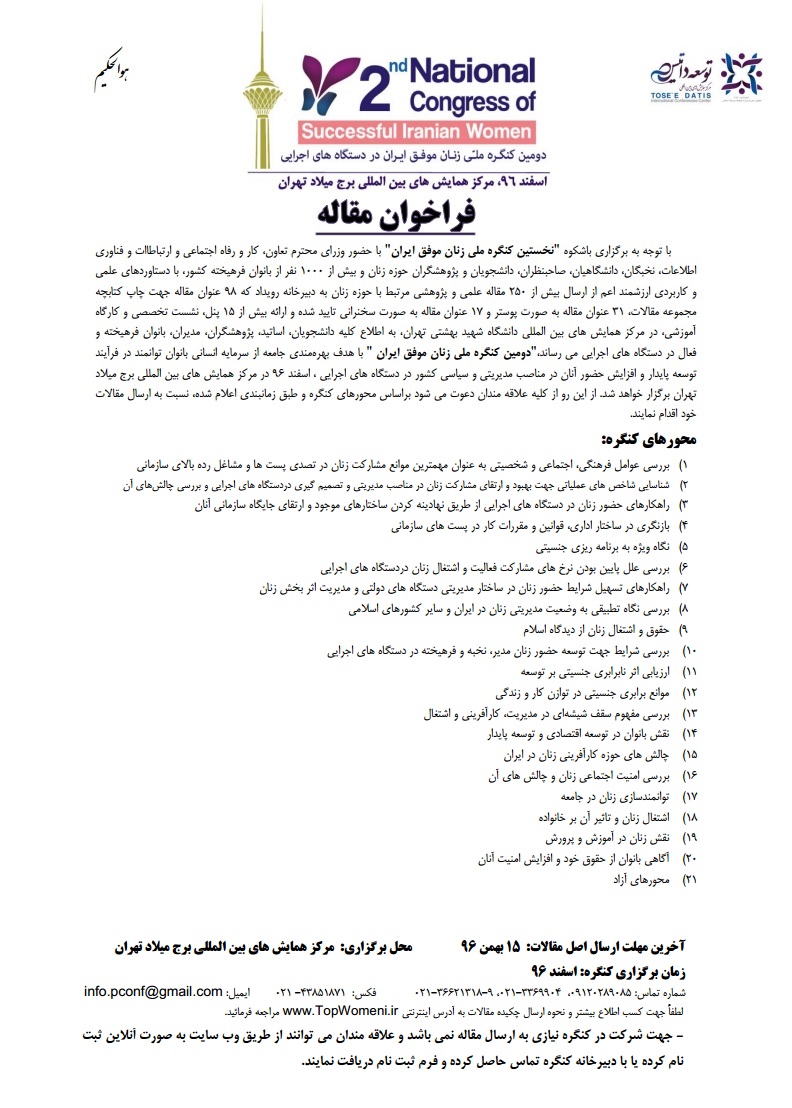 اطلاع رسانی فراخوان مقاله دومین کنگره مل زنان موفق