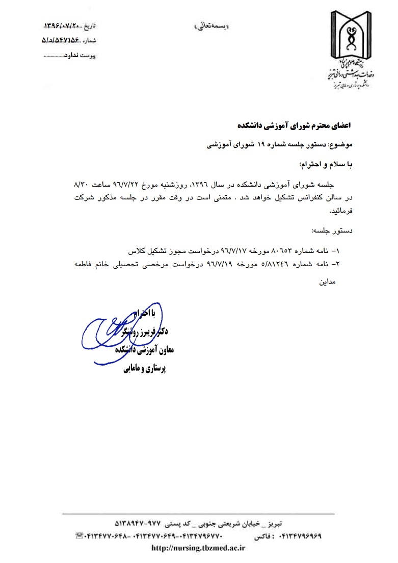 نوزدهمین شورای آموزشی دانشکده در سال 96