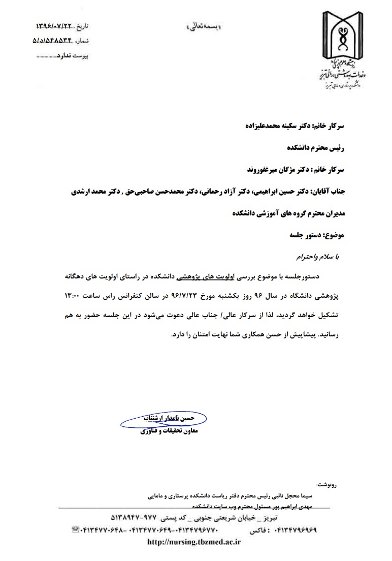 دعوت به جلسۀ اولویتهای دهگانه پژوهشی دانشگاه