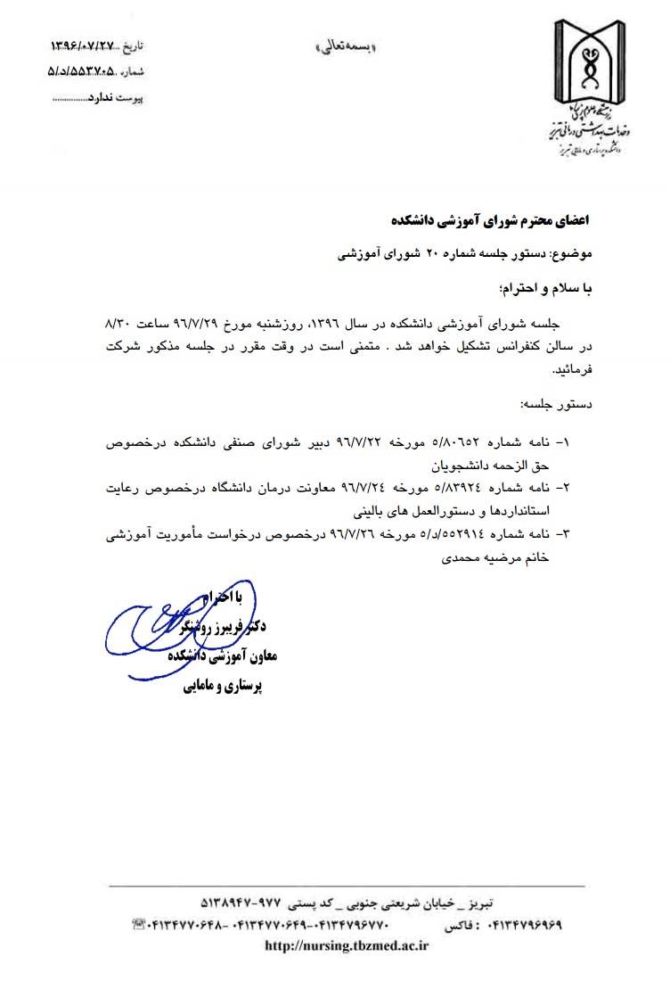 بیستمین شورای آموزشی دانشکده در سال 96