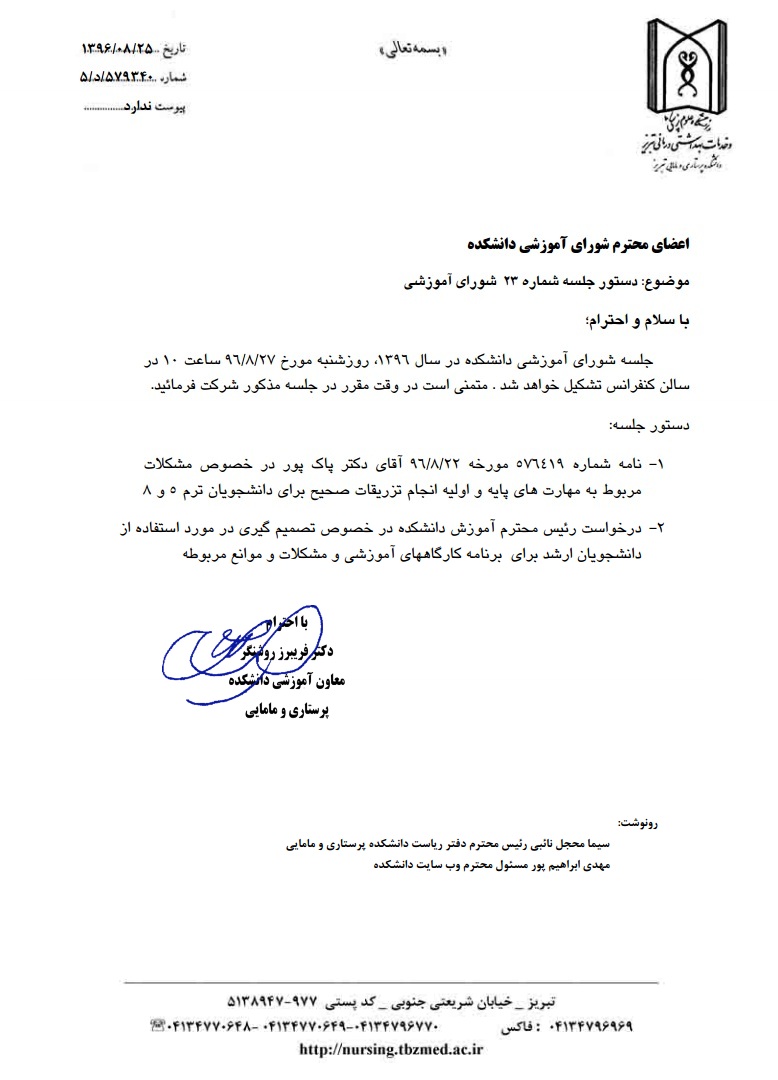 بیست و سومین شورای آموزشی دانشکده در سال 96