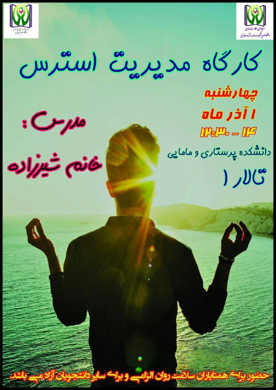 کارگاه آموزشی "مدیریت استرس" روز چهارشنبه مورخه 1 آذر با تدریس سرکار خانم شیرزاده از ساعت 12:30 الی 14 در تالار شماره یک دانشکده برگزار خواهد گردید. حضور در این کارگاه برای همتایاران سلامت روان الزامی و ...