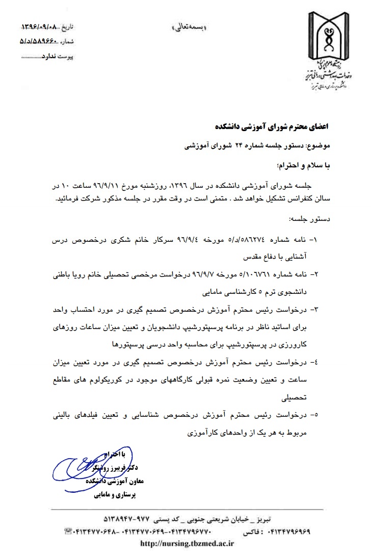 بیست و چهارمین شورای آموزشی دانشکده در سال 96