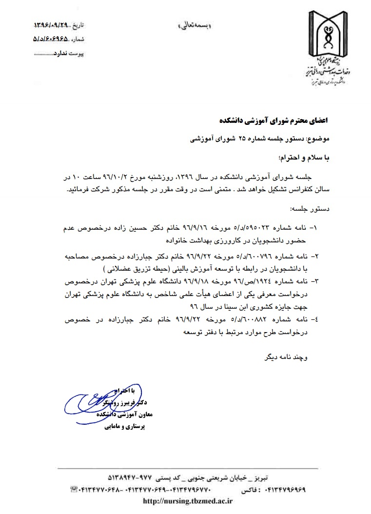 بیست و پنجمین شورای آموزشی دانشکده در سال 96
