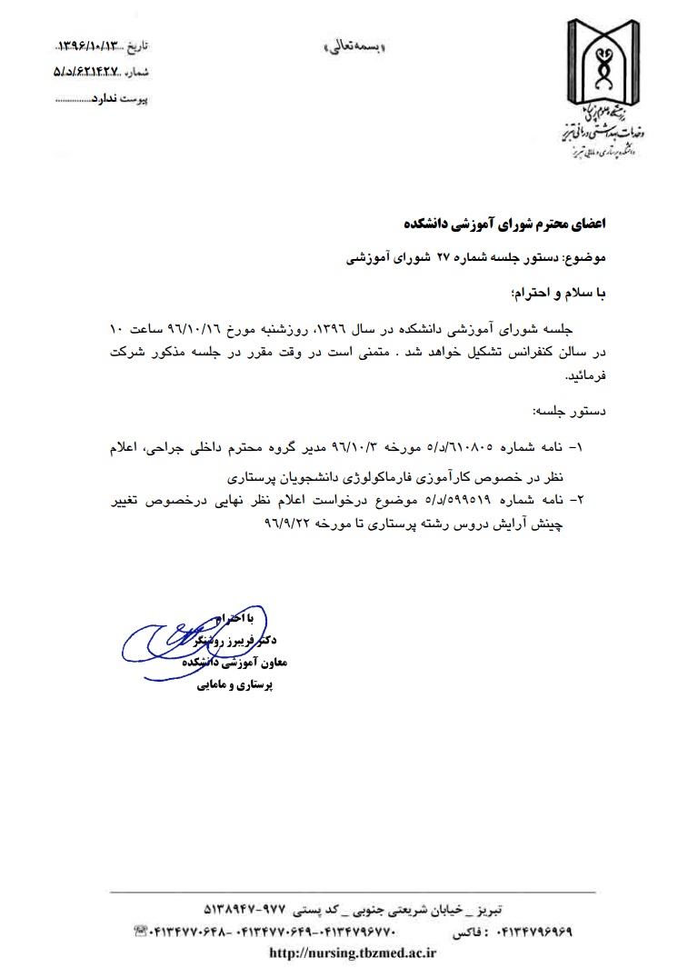 بیست و هفتمین شورای آموزشی دانشکده در سال 96