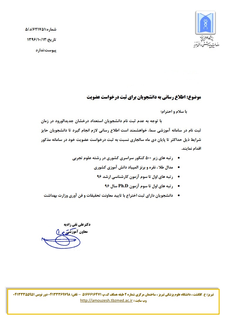 قابل توجه دانشجویان استعداد درخشان جدیدالورود