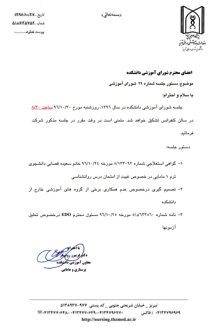 بیست و نهمین شورای آموزشی دانشکده در سال 96