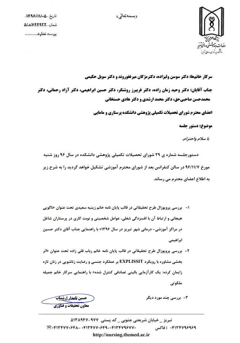 بیست و نهمین جلسه شورای تحصیلات تکمیلی پژوهشی دانشکده در سال 96