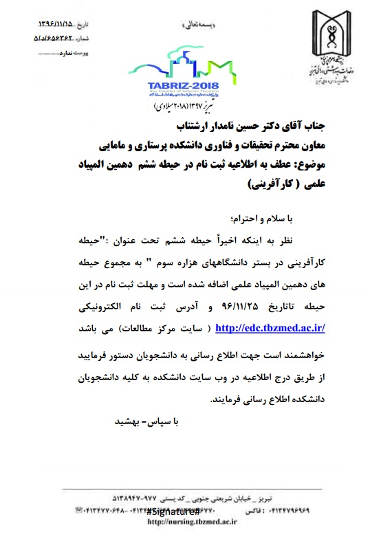 نظر به اینکه اخیراً حیطه ششم تحت عنوان "حیطه کارآفرینی در بستر دانشگاه های هزار سوم" به مجموع حیطه های دهمین المپیاد علمی اضافه شده است و مهلت ثبت نام در این حیطه تا تاریخ ...