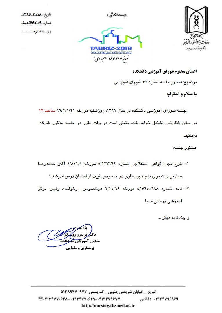 سی و دومین جلسه شورای آموزشی در سال 96؛ روز شنبه مورخه 21 بهمن ماه