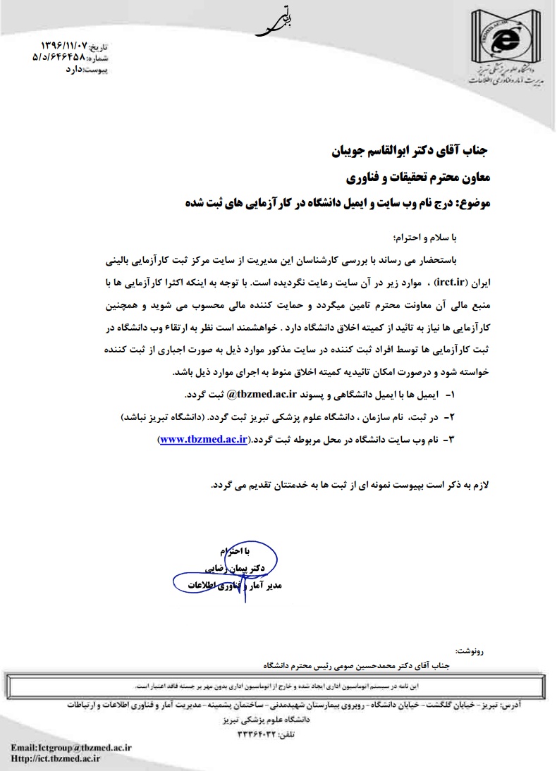 ضرورت درج نام وبسایت و ایمیل دانشگاه در کار آزمایی های ثبت شده