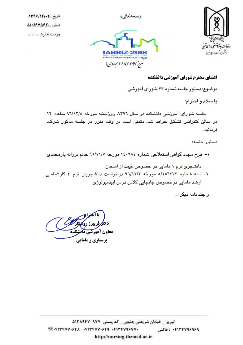 سی و سومین جلسه شورای آموزشی در سال 96؛ روز شنبه مورخه 5 اسفند 96
