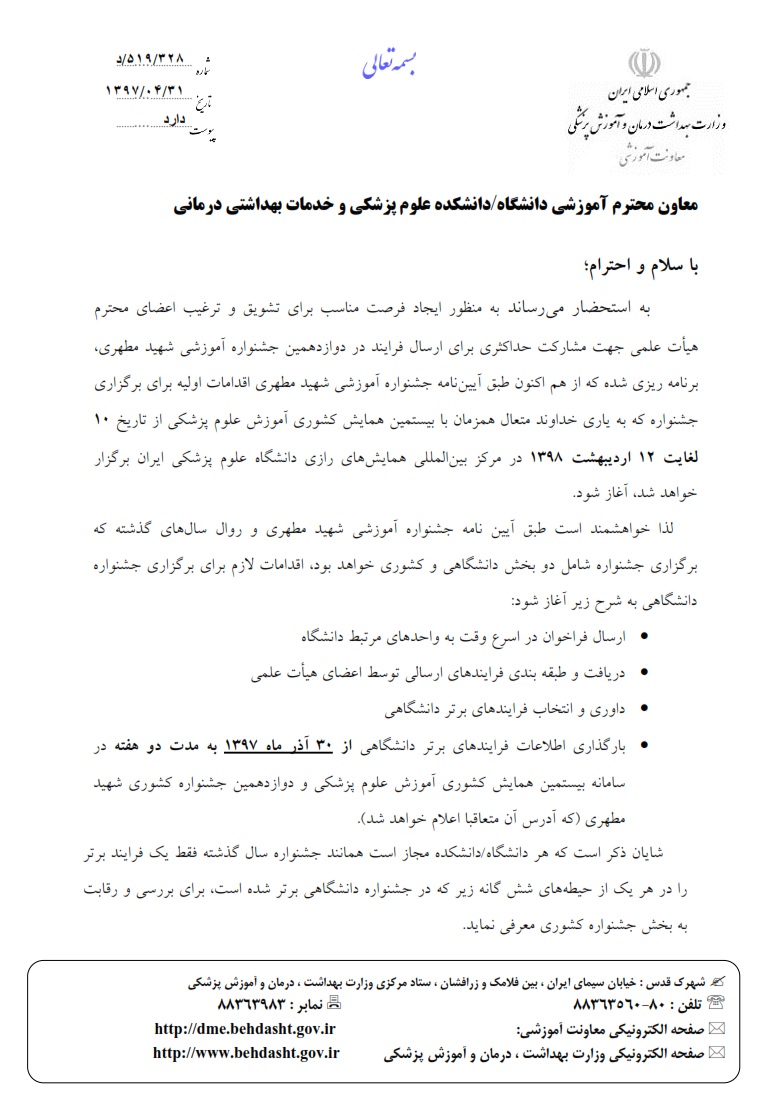 اطلاع رسانی دوازدهمین جشنواره آموزشی شهید مطهری